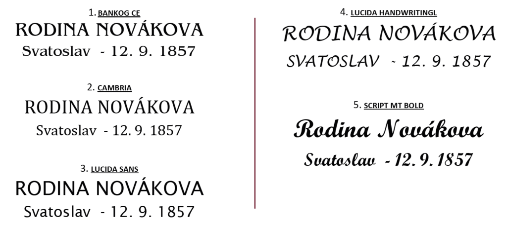 Vybrali jsme pro vás standardní a nejžádanější vzory písma a ornamentů